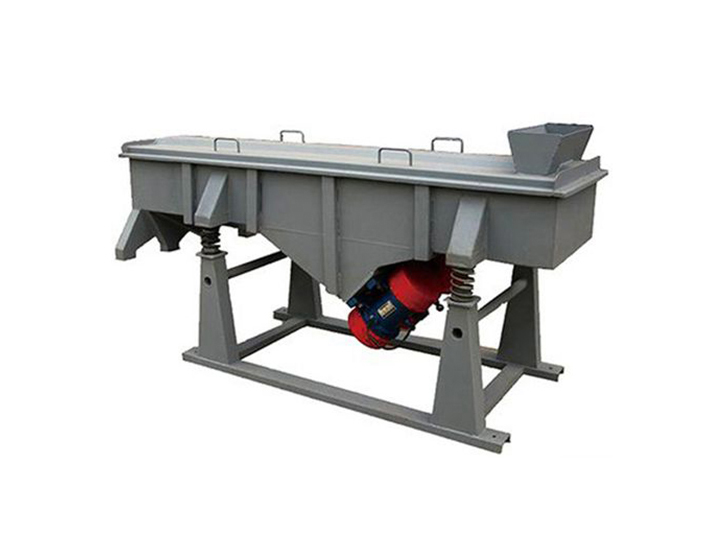 直線振動篩山振動電機、篩箱、篩網、傳(chuan) 振體(ti) 、減振裝置組成。